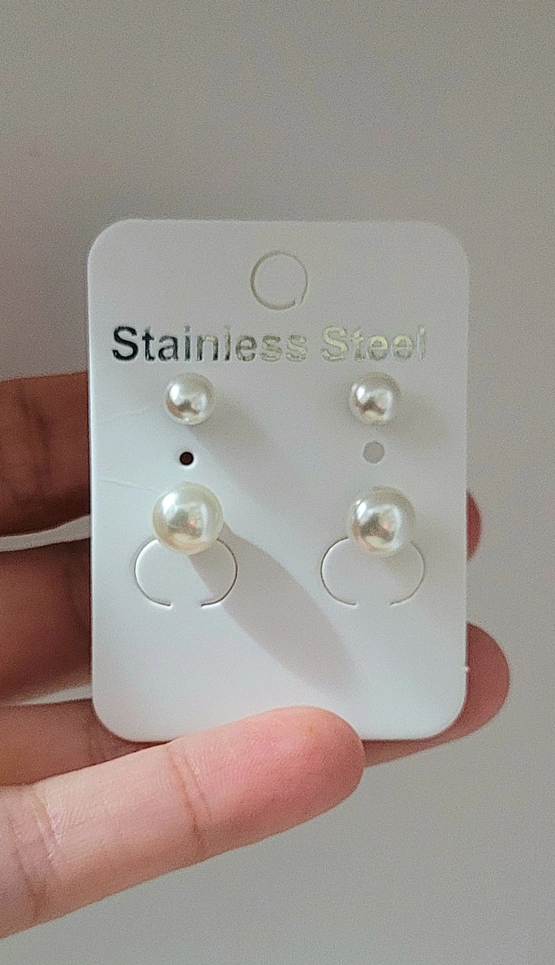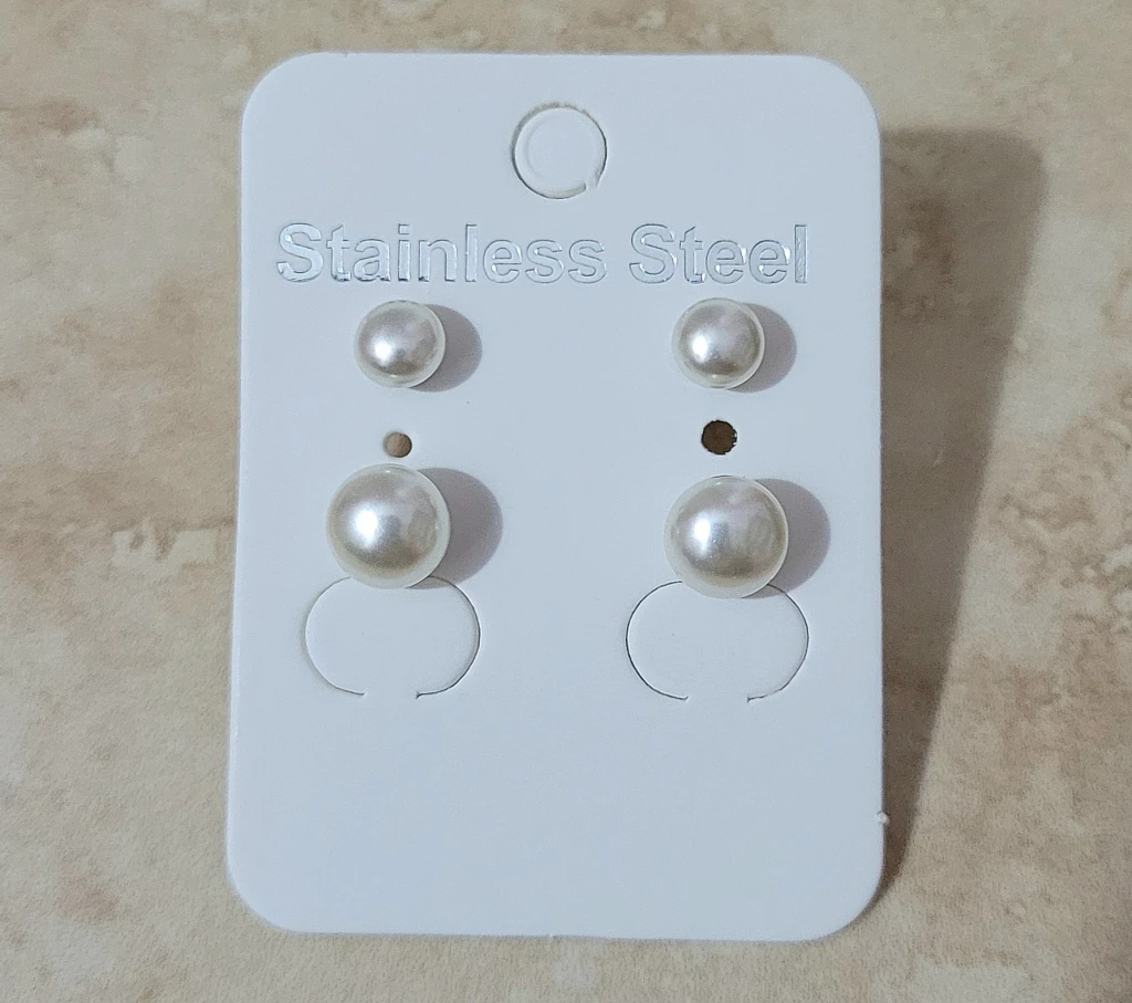 AROS DE ACERO QUIRURGICO SIMIL PERLAS DE RIO POR 2 PARES DE 5 Y 7 MM.